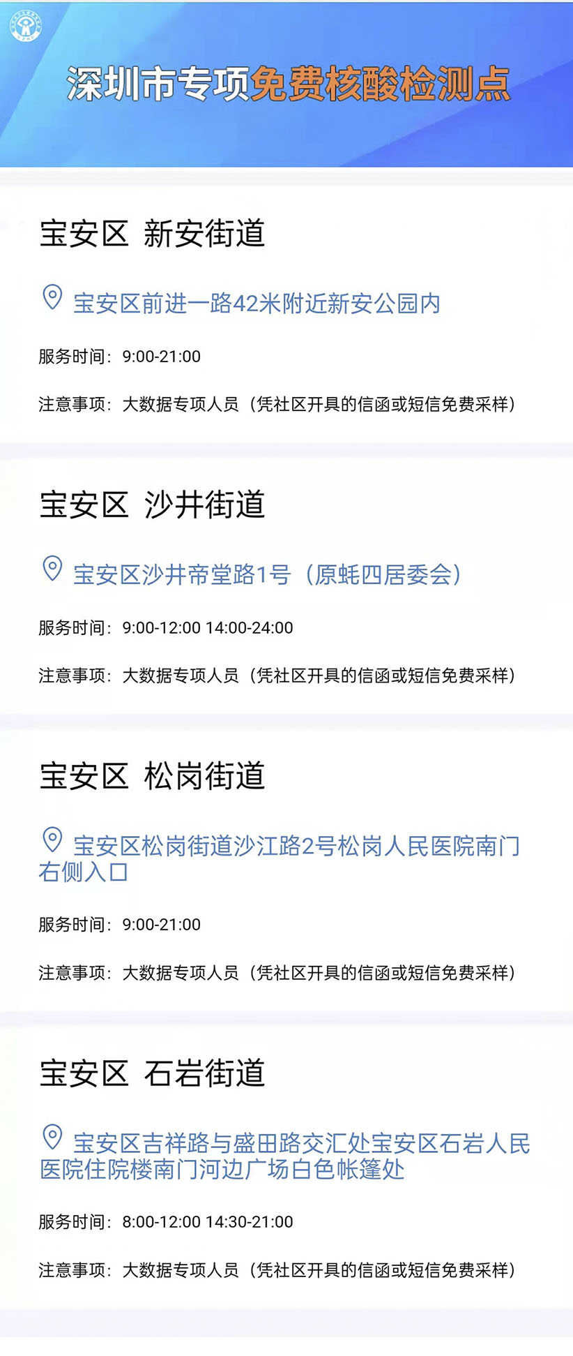 深圳市卫健委免费核酸检测点查询 深圳市专项免费核酸检测点 宝安区