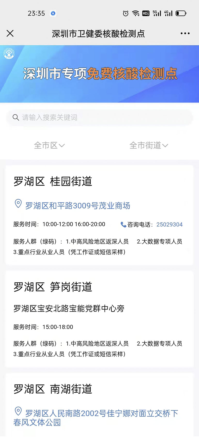 深圳市卫健委免费核酸检测点查询 深圳市专项免费核酸检测点 罗湖区
